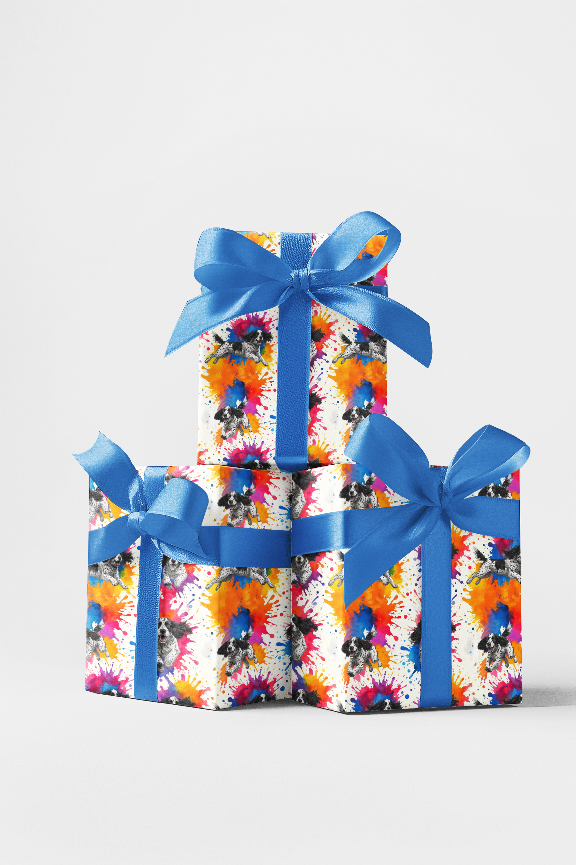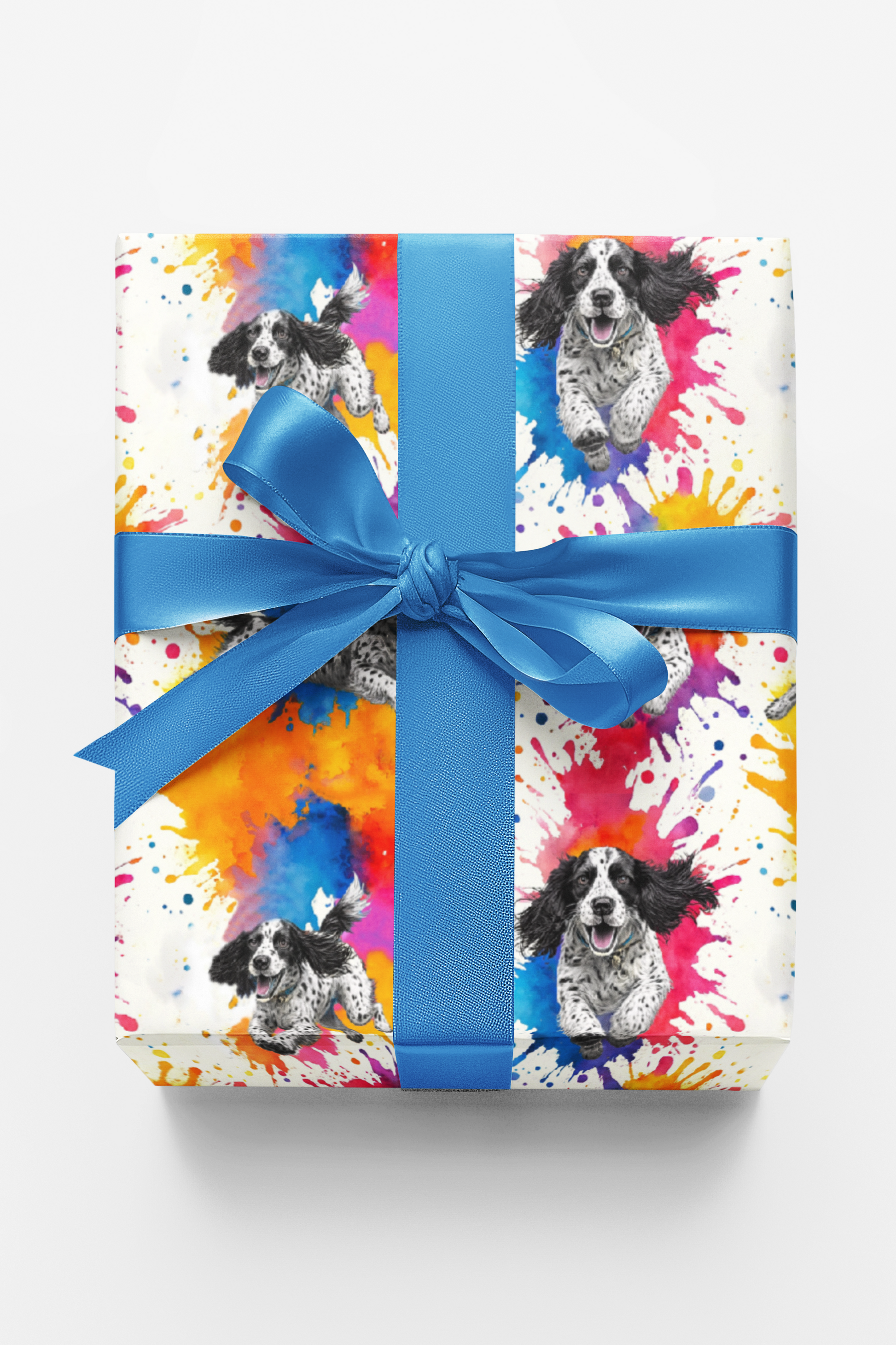 Add a burst of energy to your gifts with our Spaniel Splash Wrapping Paper! This dynamic design captures playful spaniel silhouettes mid-run, surrounded by energetic abstract paint splashes that radiate movement and joy. Perfect for dog lovers, artists, and anyone who enjoys a lively, creative twist on traditional wrapping — it’s where art meets motion in every fold.