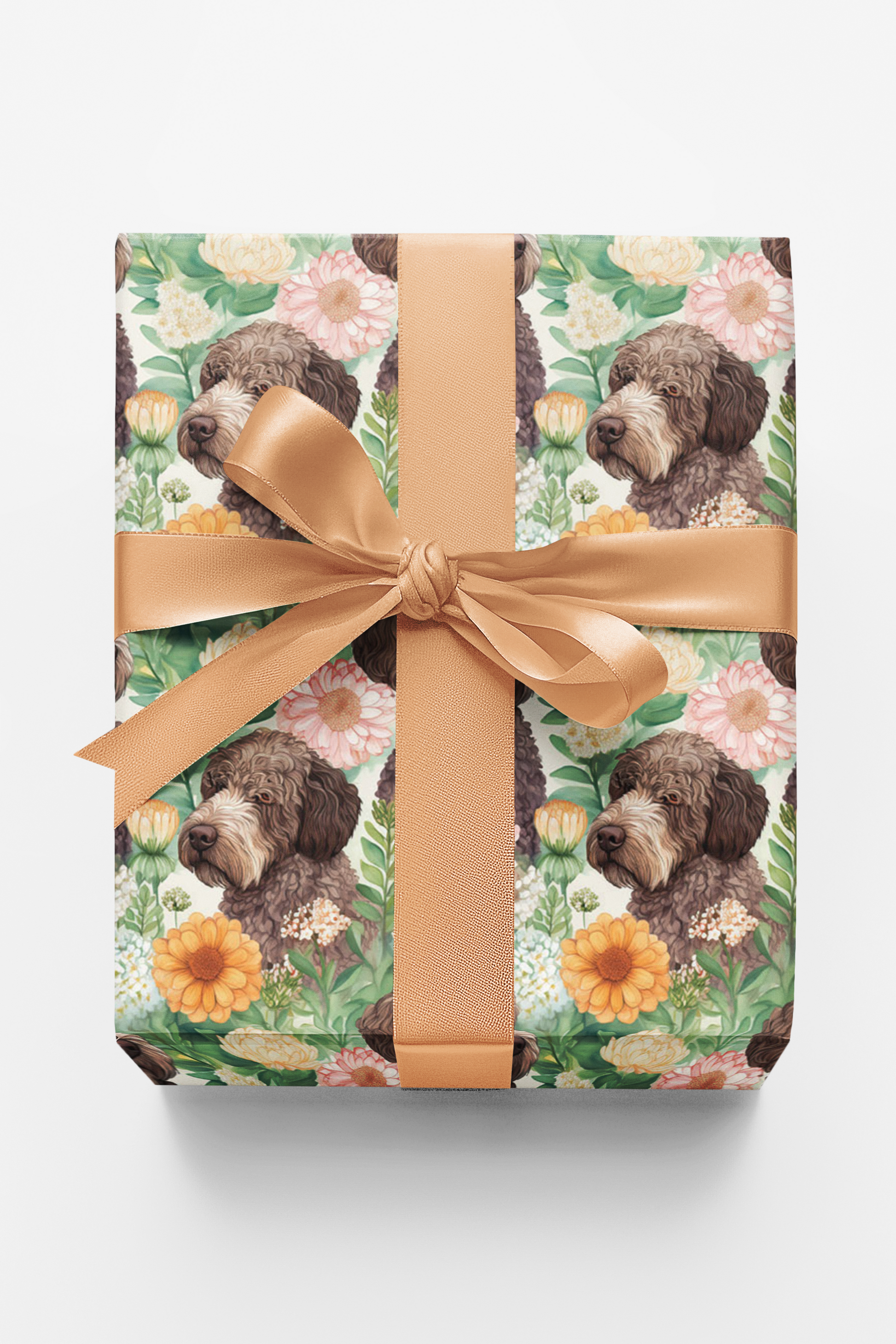 Bring a touch of nature’s beauty to your gifts with this delightful wrapping paper featuring a Spanish Water Dog in a vibrant garden surrounded by blooming flowers. Illustrated in a soft watercolor style, the design captures the charm and warmth of a peaceful outdoor scene. Perfect for birthdays, spring celebrations, or any occasion that calls for a fresh, cheerful, and heartwarming presentation.