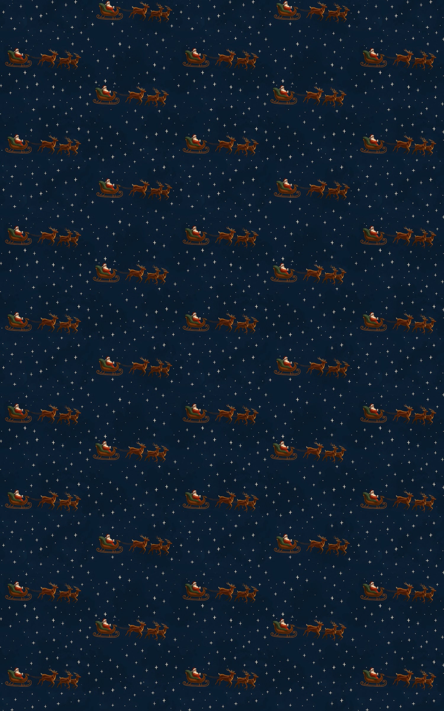 Sweeping across a midnight sky dusted with starlight, this design captures the wonder of Christmas in motion. Santa glides through the darkness in his emerald sleigh, led by graceful reindeer whose silhouettes dance like whispers against the deep navy night. Each scene feels plucked from a timeless storybook—warm, nostalgic, and full of quiet magic. St. Nick’s Journey celebrates the spirit of holiday enchantment, where every fold carries the thrill of Christmas Eve, every glance a reminder of childhood awe and the promise of joy riding in on winter’s wings.
