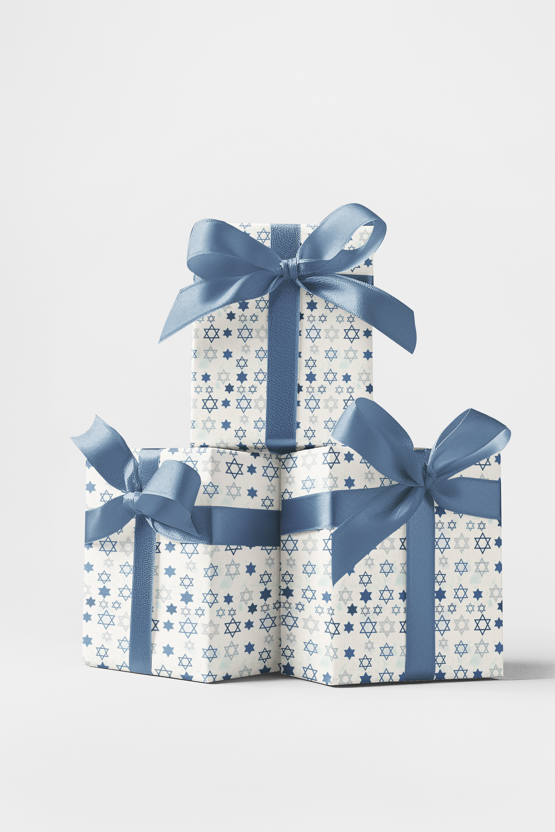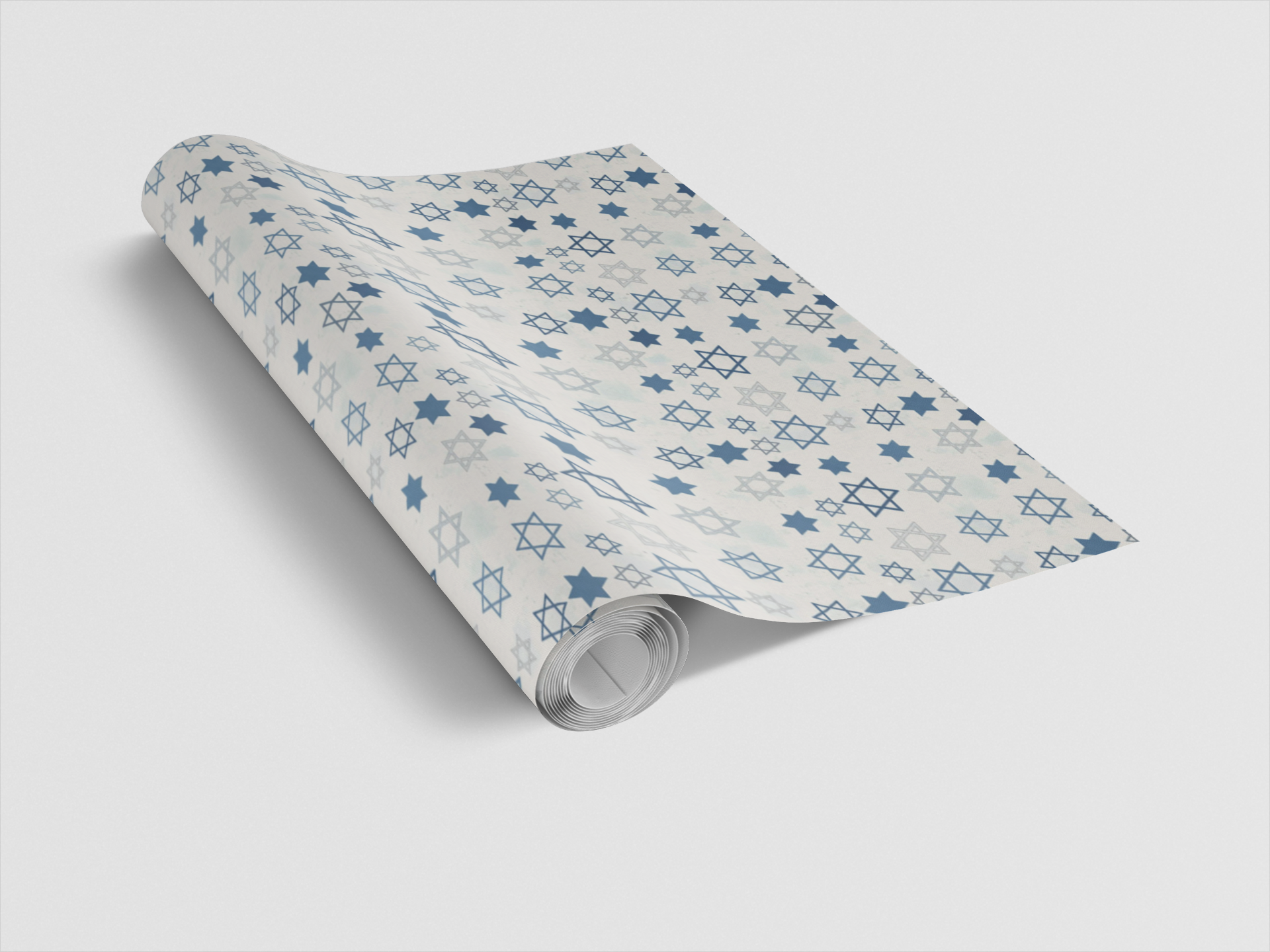 Celebrate tradition with elegance. This seamless design features interlaced Stars of David in varied sizes, arranged in a balanced repeat for a timeless look. Rendered in soft blue and silver tones, the pattern captures a sense of harmony and sophistication, perfect for Hanukkah celebrations or meaningful year-round gifting.