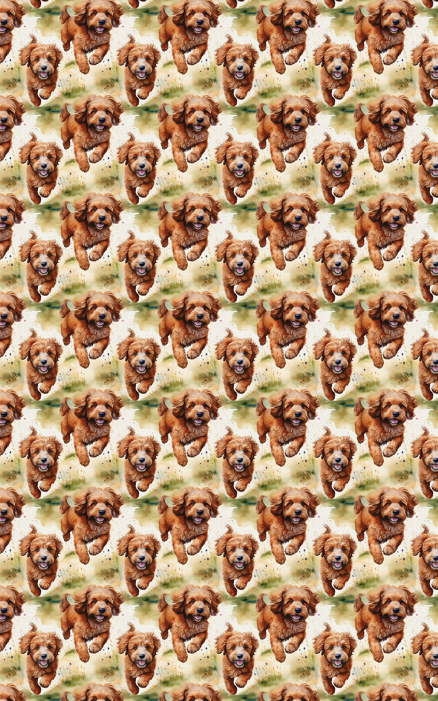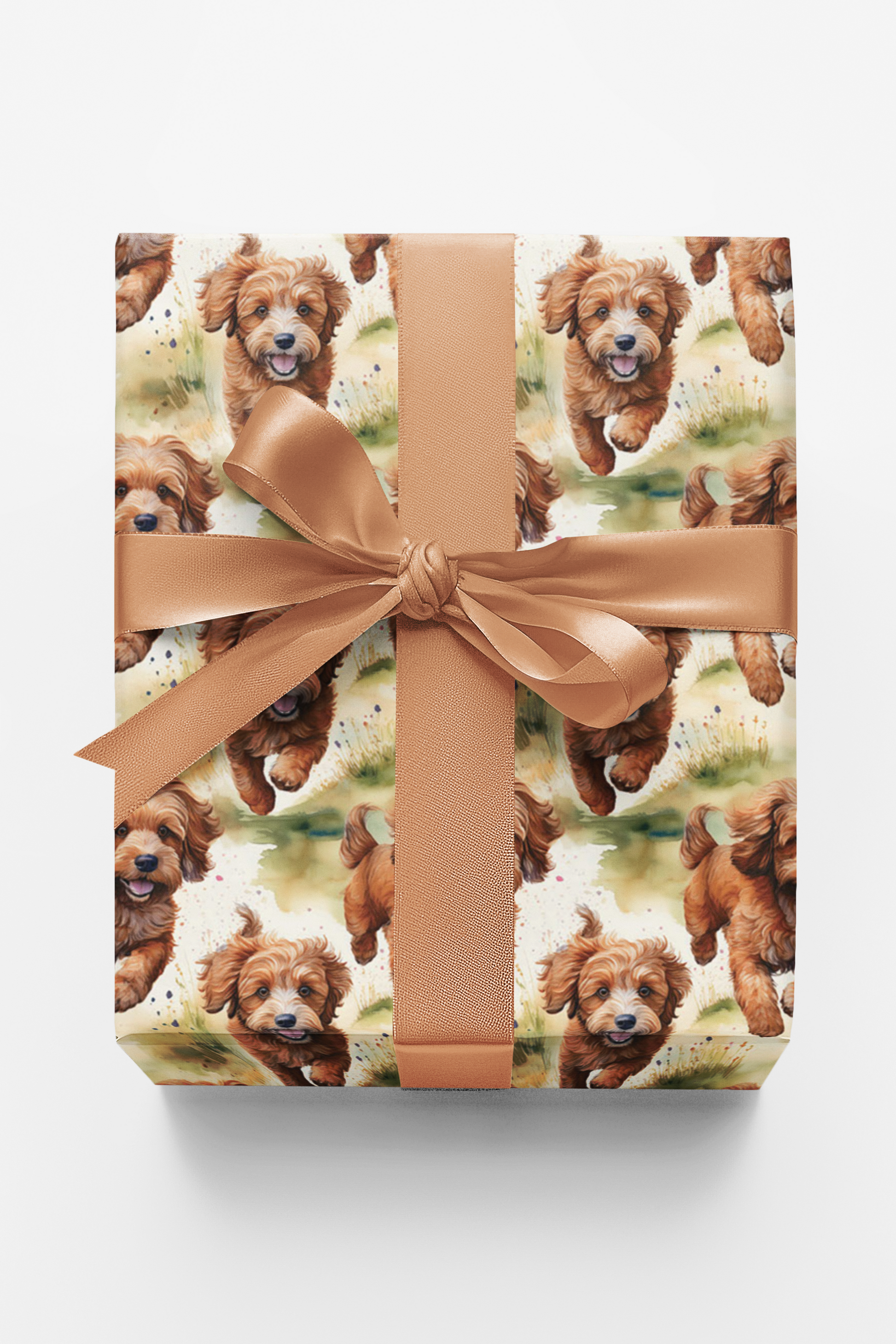 Celebrate any occasion with the joyful Cavapoo Fields of Fun wrapping paper! The design features adorable Cavapoo dogs with soft, curly golden and caramel-colored coats, captured mid-run across a vibrant grass field. The background is a lush mix of bright green and lime green watercolor washes, giving the paper a fresh, airy, and painterly feel. This cheerful wrap is perfect for dog birthdays, pet adoption gifts, springtime celebrations, or for any occasion that calls for a touch of lighthearted, canine-inspired charm.