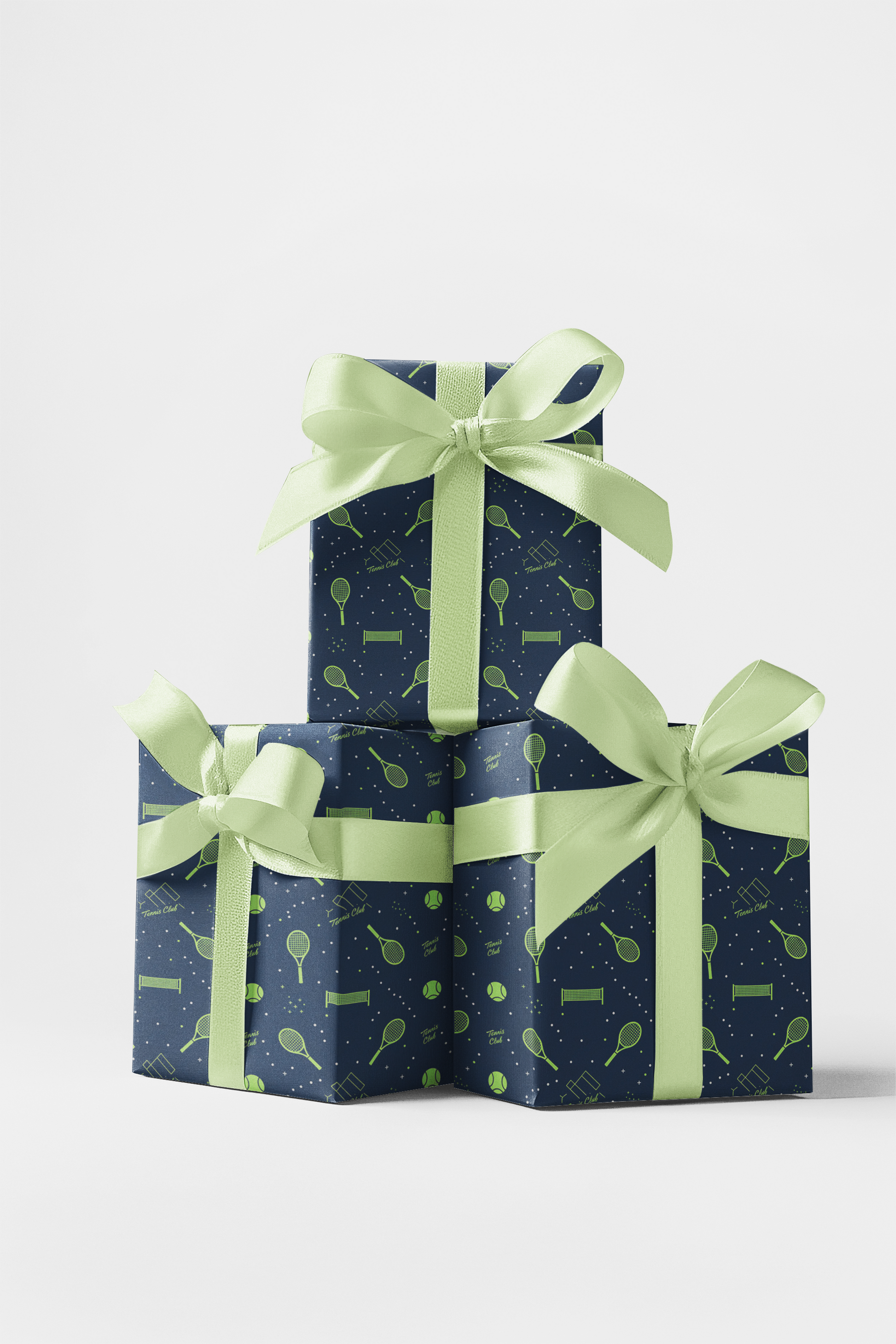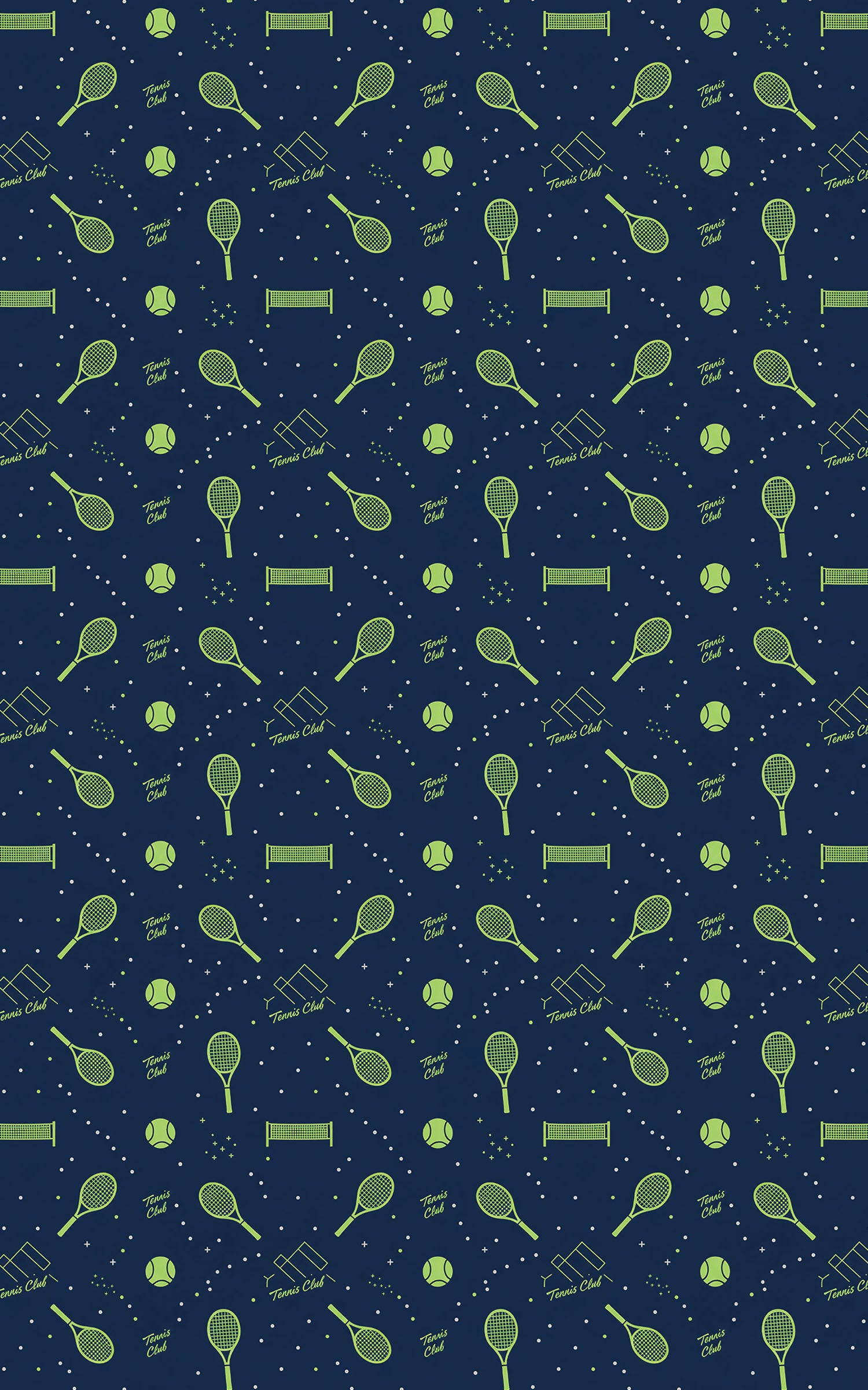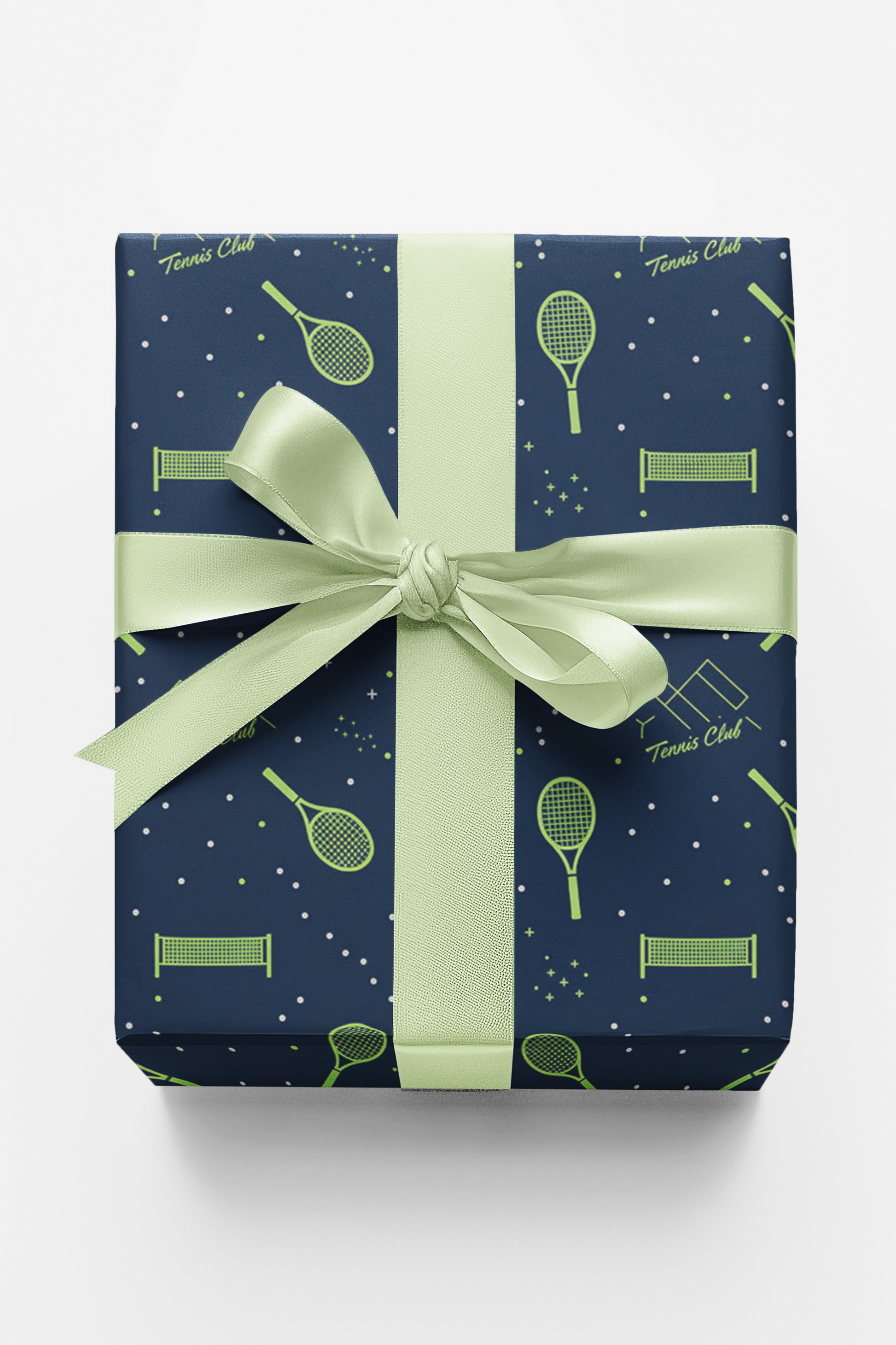 Serve up style with our Tennis Club wrapping paper! This elegant and sporty seamless pattern features minimalist line-art illustrations of tennis rackets, balls, and court nets, subtly interspersed with the phrase "Tennis Club". The design uses a classic, refined palette of lime/chartreuse green against a deep navy blue background, making it sophisticated yet fun. It's the perfect choice for gifts for tennis players, coaches, fans of racket sports, Father's Day, or any occasion celebrating athleticism and a love for the game.
