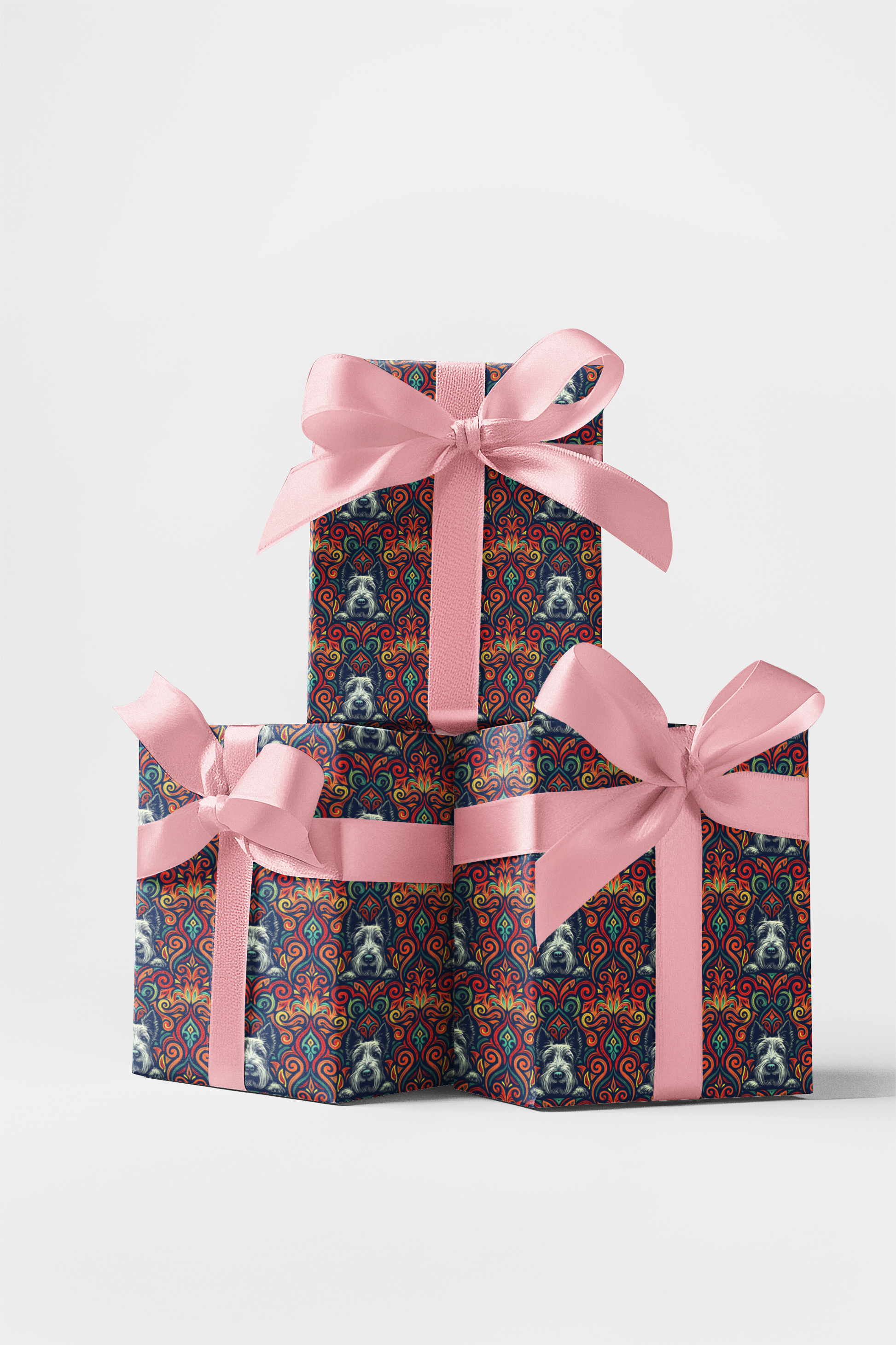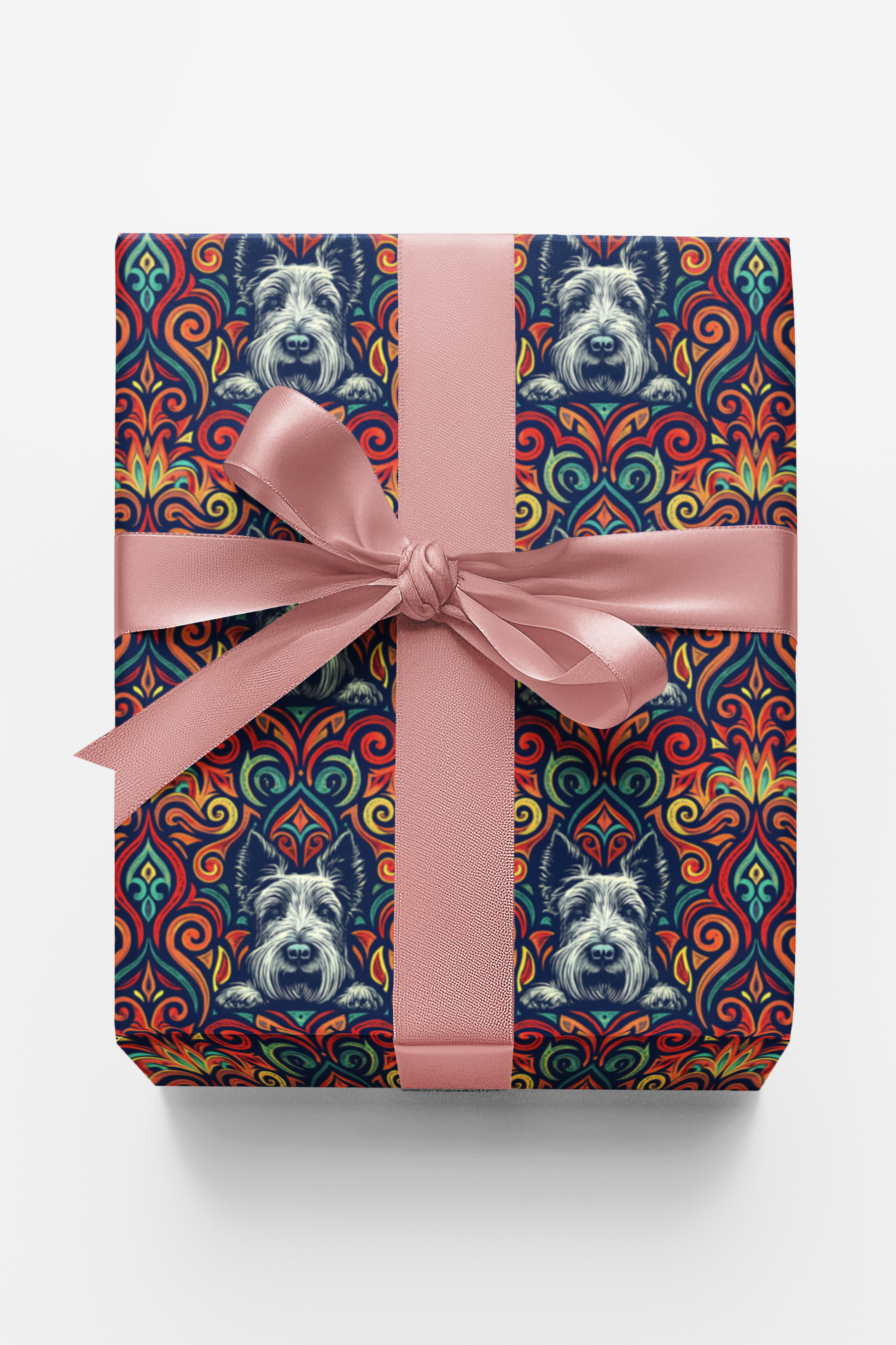 Infuse your gifts with artistic flair using our Terrier Tribal Wrapping Paper! This unique design blends tribal-inspired pattern elements with terrier silhouettes formed in bold negative space, creating a striking balance of texture, rhythm, and personality. Perfect for dog lovers, design enthusiasts, and those who appreciate handcrafted, cultural-inspired aesthetics — it’s a modern fusion of art and spirit in every wrap.