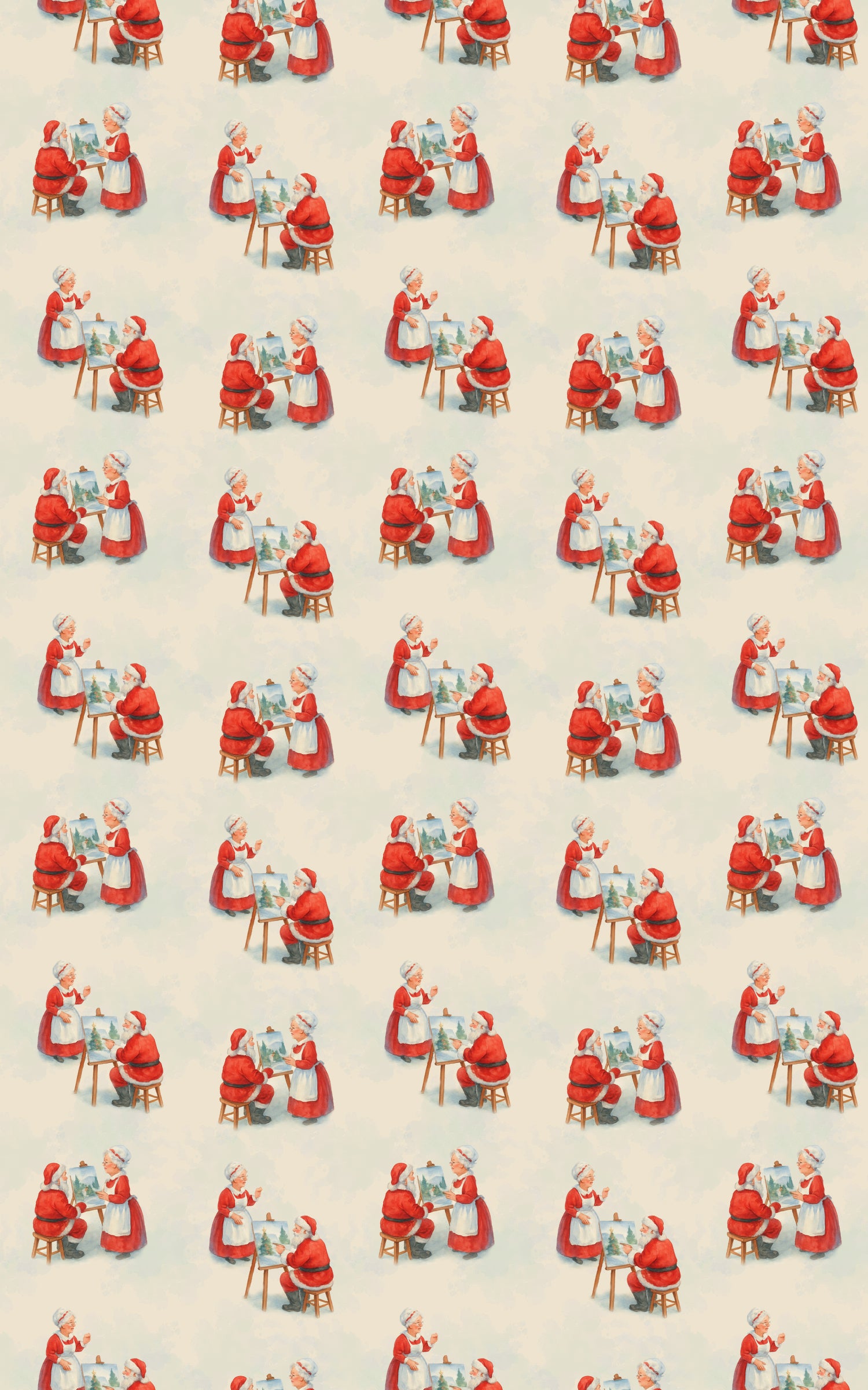 Turns out Santa isn’t just handy with toys, he’s got a creative streak too! With Mrs. Claus as his biggest cheerleader (and toughest art critic), Santa’s traded in his sleigh for a paintbrush. Perfect for art lovers, holiday romantics, and anyone who believes even the North Pole has art class Tuesdays. Add some whimsical holiday charm to your season with this festive masterpiece!