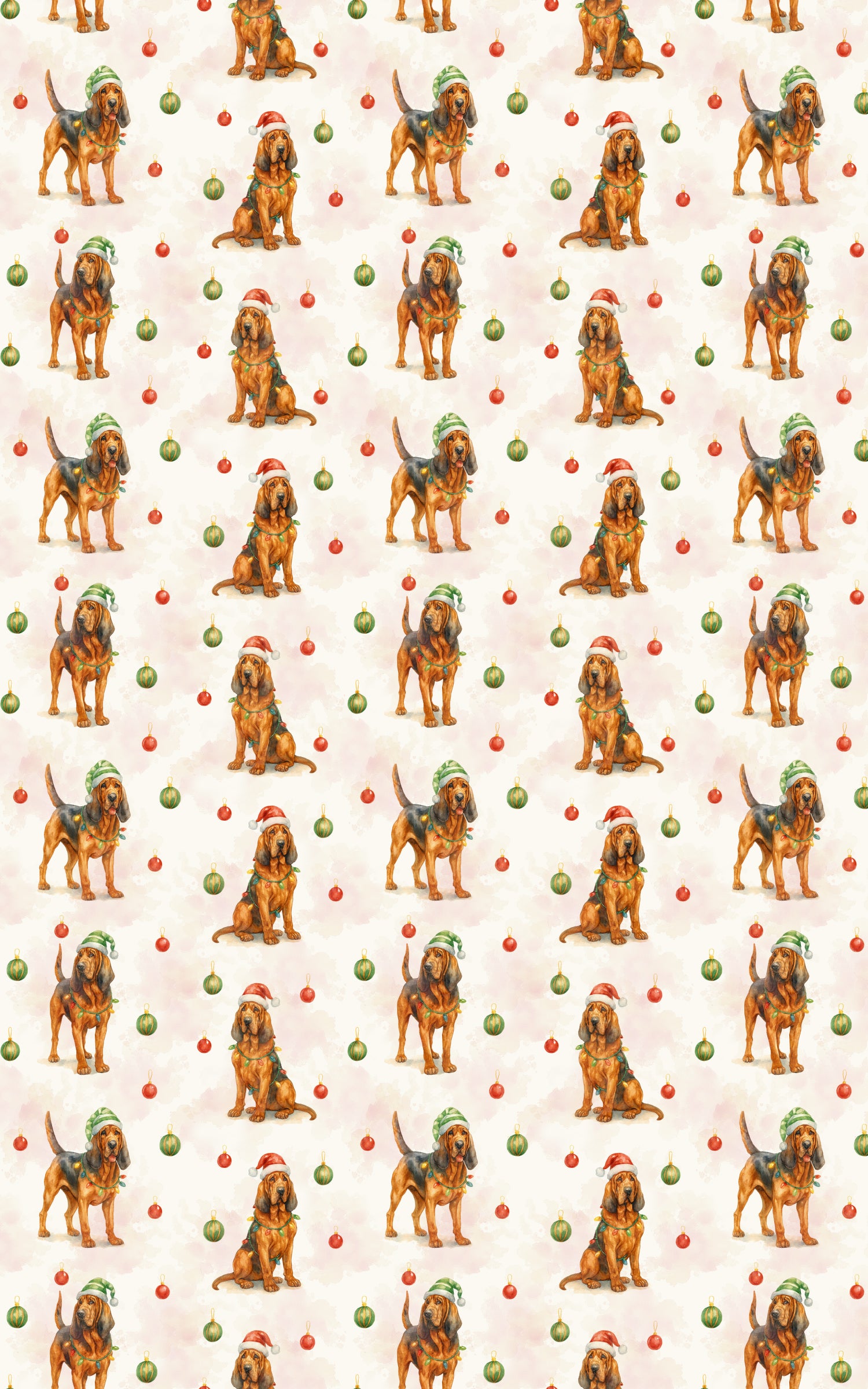 Draped in twinkling lights and topped with a festive hat, this Bloodhound brings holiday cheer with every wag and wrinkle. Its soulful eyes and velvety ears capture the warmth of the season, while its curious nose seems to follow the sweet trail of Christmas magic. Gentle yet full of spirit, it embodies loyalty wrapped in laughter and charm. This design celebrates joyful devotion and festive wonder—where every glance glows with heartwarming mischief, and every fold carries the playful scent of Merry Sniffmas.