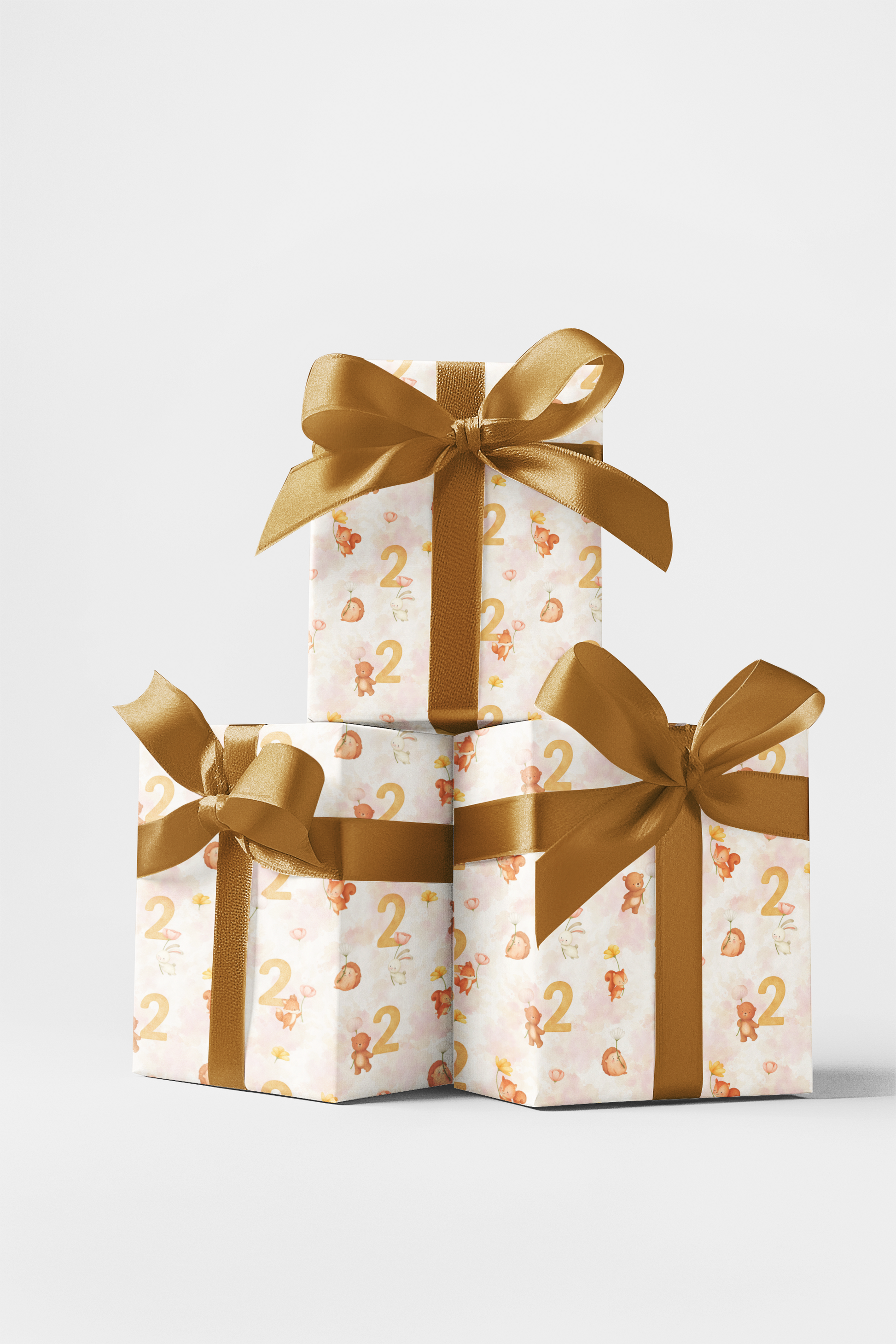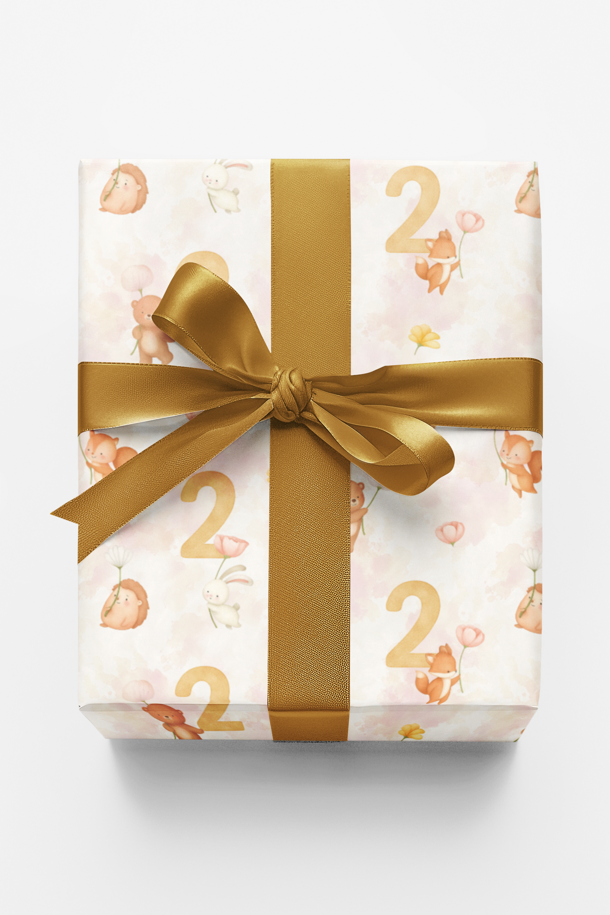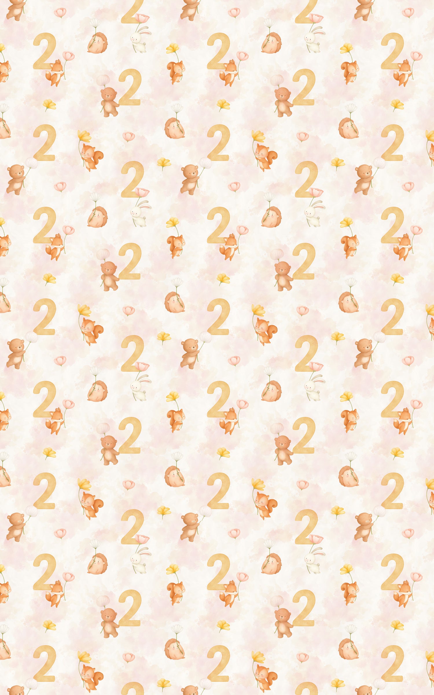 Two much cuteness to handle! With cuddly critters, floating blossoms, and a sprinkle of golden magic, this pattern is perfect for celebrating a second birthday in style. From teddy bears to bunnies, each little friend joins the party to make “turning two” feel like a woodland fairytale come true. Wrap your gifts in this, and you’ll be the life of the birthday burrow!