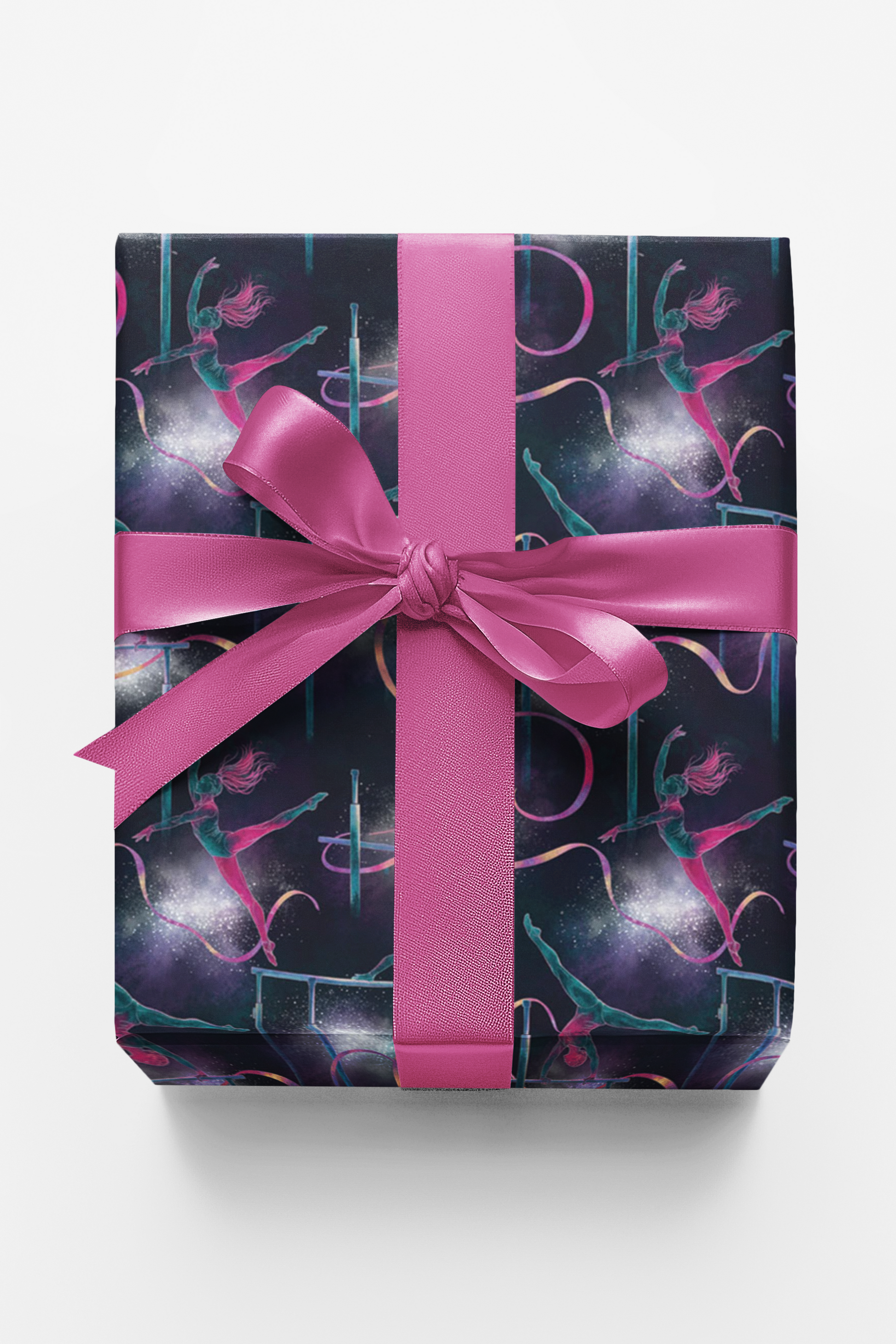 Celebrate strength, grace, and motion with our Uneven Grace Wrapping Paper. Featuring gymnasts swinging effortlessly between uneven bars surrounded by swirling ribbons and soft clouds of chalk dust, this design captures the artistry and power of gymnastics in motion. Perfect for athletes, coaches, and gymnastics fans, it brings an energetic yet elegant touch to birthdays, recitals, and special celebrations.