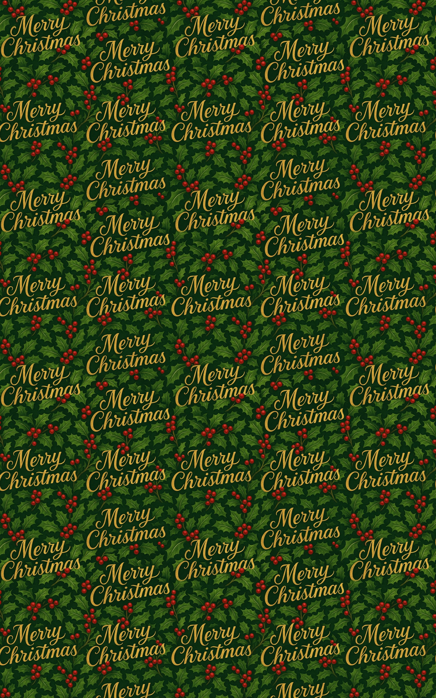 Wrapped in lush holly greens and glowing golden letters, this festive design radiates the warm nostalgia of a classic Christmas. The elegant Victorian script drifts across the foliage like a handwritten wish, each curve shimmering with timeless charm. Bright clusters of red berries add a playful spark, balancing tradition with joyful cheer. This pattern celebrates the magic of the holiday season—where every glance feels like a cozy fireside moment, and every swirl of lettering carries the promise of merry days ahead.