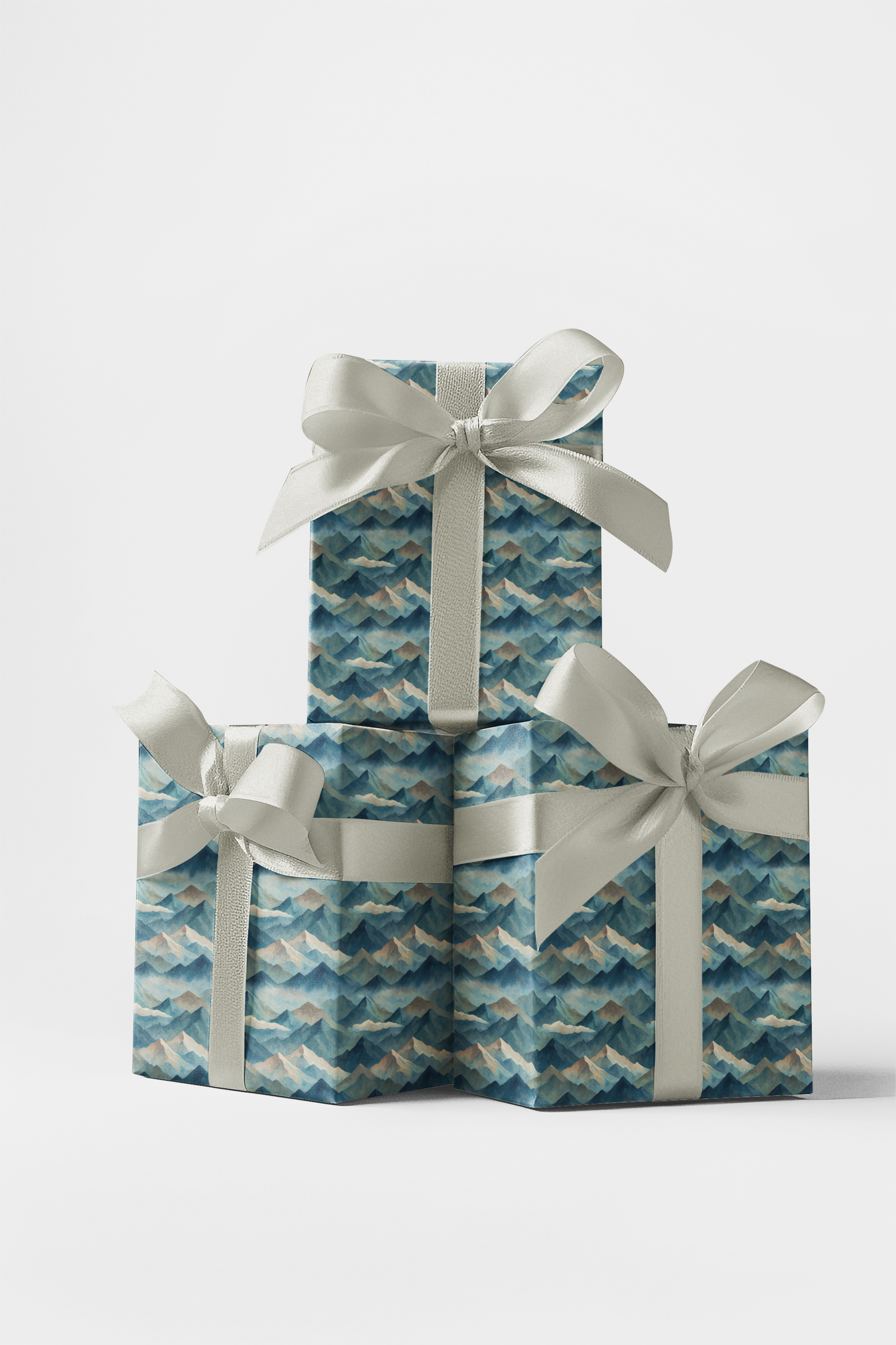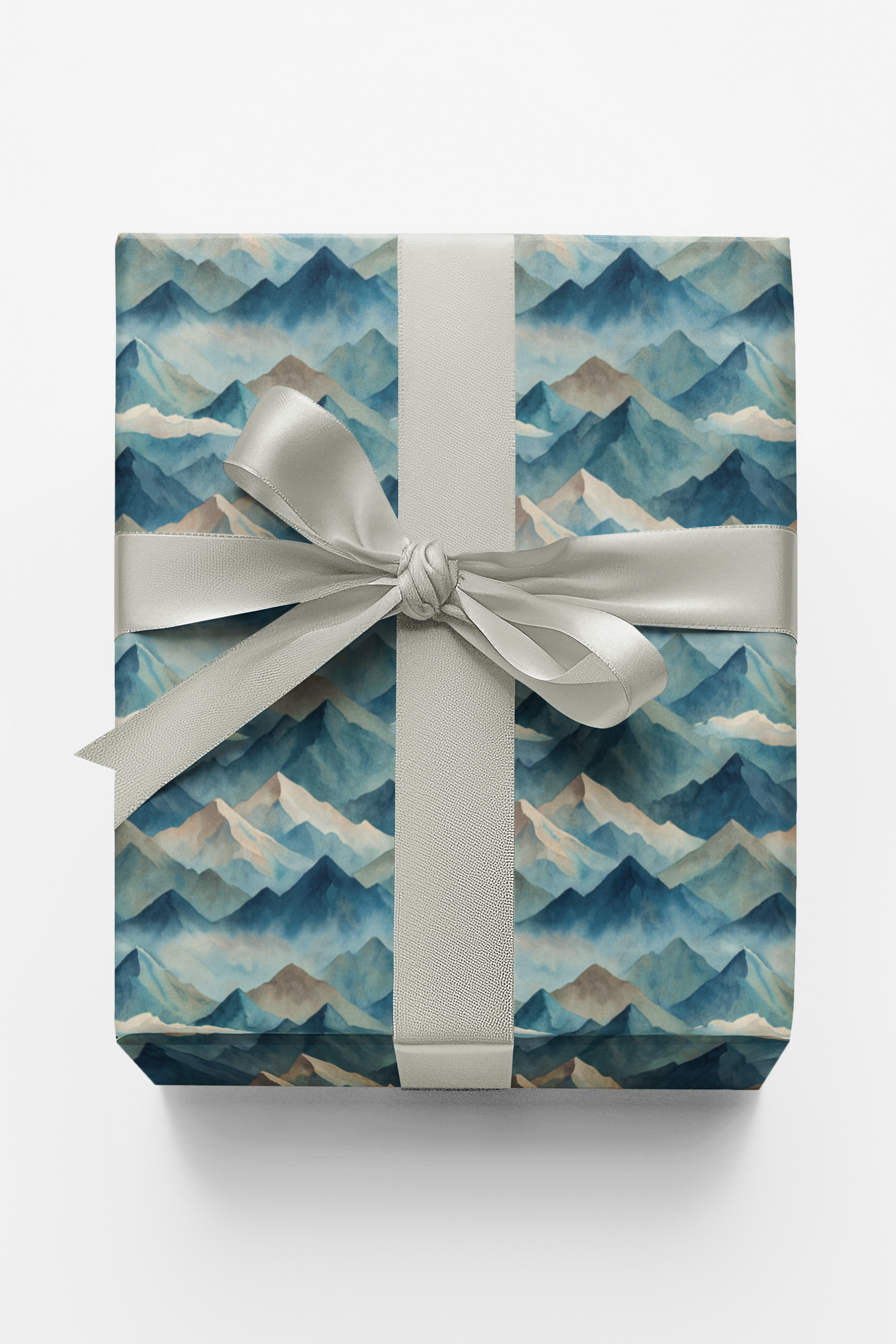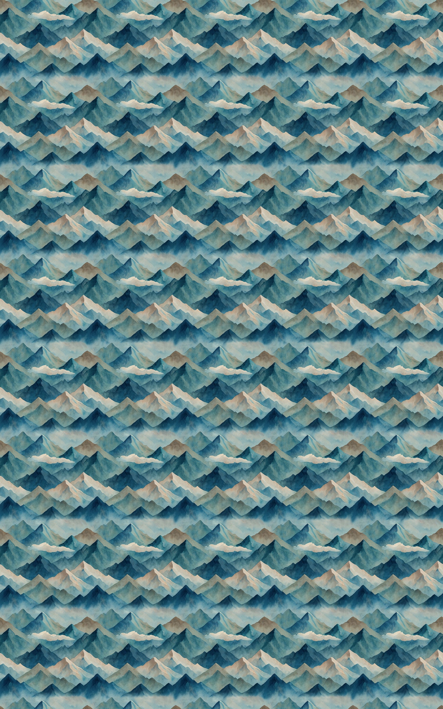 Bathed in soft blues, gentle grays, and earthen browns, captures the quiet majesty of mountains waking beneath the morning light. Each layered ridge flows like watercolor in motion—calm, fluid, and endlessly deep. This design celebrates serenity and strength, the meeting of sky and earth in perfect balance. Every fold carries the breath of open air, the echo of distant horizons, and the timeless beauty of nature painted by hand.