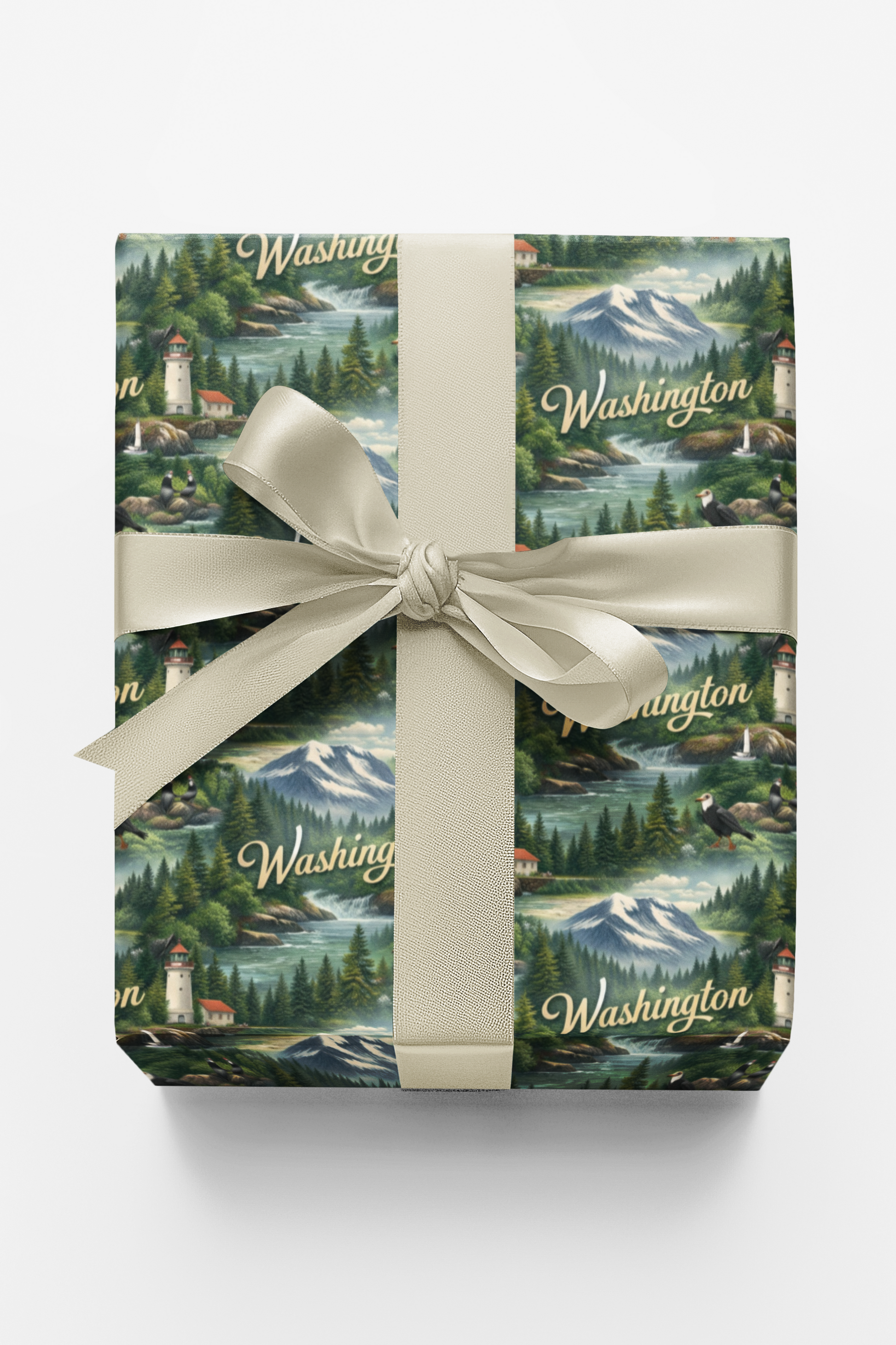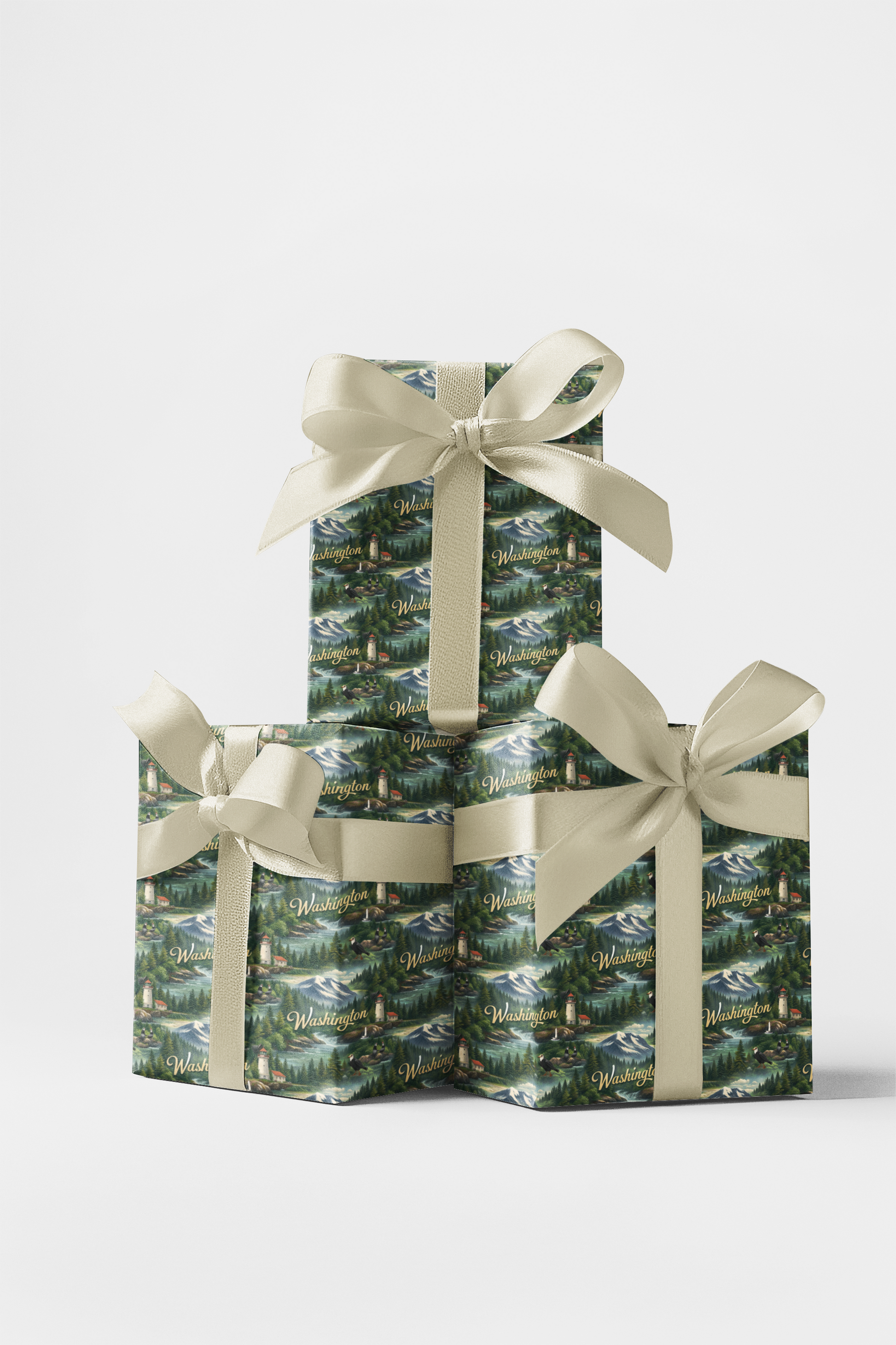 Where rugged mountains meet misty shores, Washington Evergreen Coast captures the wild serenity of the Pacific Northwest. Towering evergreens blanket rolling hills, lighthouses stand watch along rocky inlets, and distant peaks rise beneath soft, clouded skies. This design celebrates balance and beauty—where forest, sea, and mountain exist in quiet harmony. Every detail feels cool, grounded, and timeless, wrapping each gift in the calm strength and enduring spirit of Washington’s coastal wilderness.