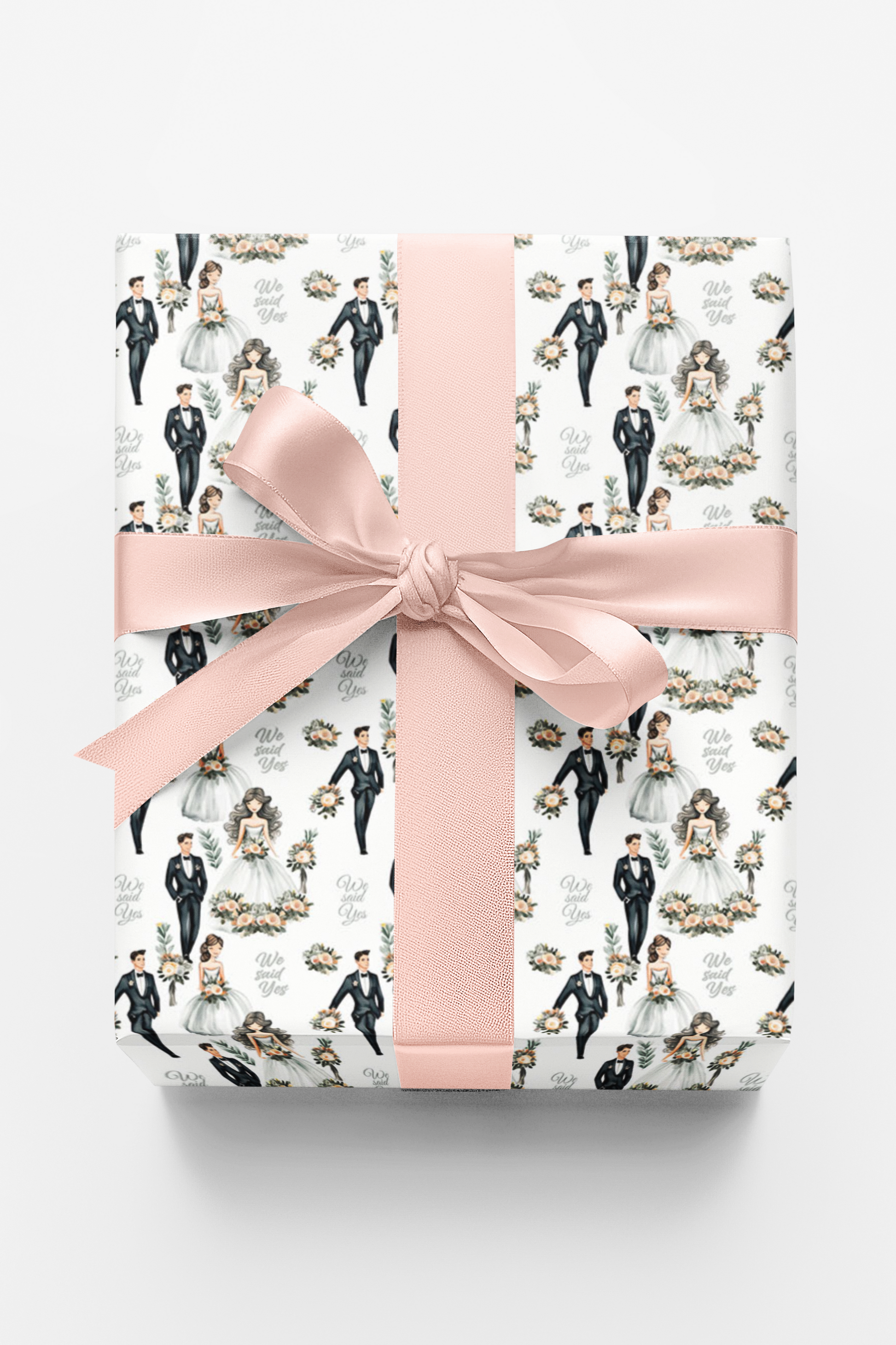 Love is in the air—and on our latest design. From elegant bouquets to timeless rings, this wrap captures all the charm of “I do” moments. Whether you're gifting the happy couple or wrapping up something special for your bridal party, this one’s made for celebrating love in style.