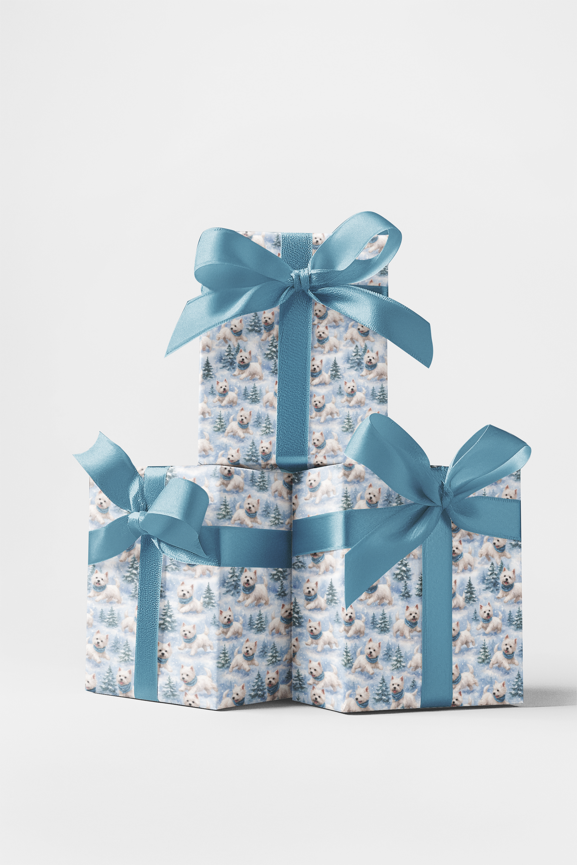 Celebrate the magic of the season with our Westie Winter Wonderland Wrapping Paper! This heartwarming design captures playful Westie dogs frolicking through snowy fir trees, surrounded by gently falling snowflakes and wintry charm. With its soft palette and joyful spirit, it’s the perfect wrapping paper for holiday gifting — bringing cozy, festive delight to every package.