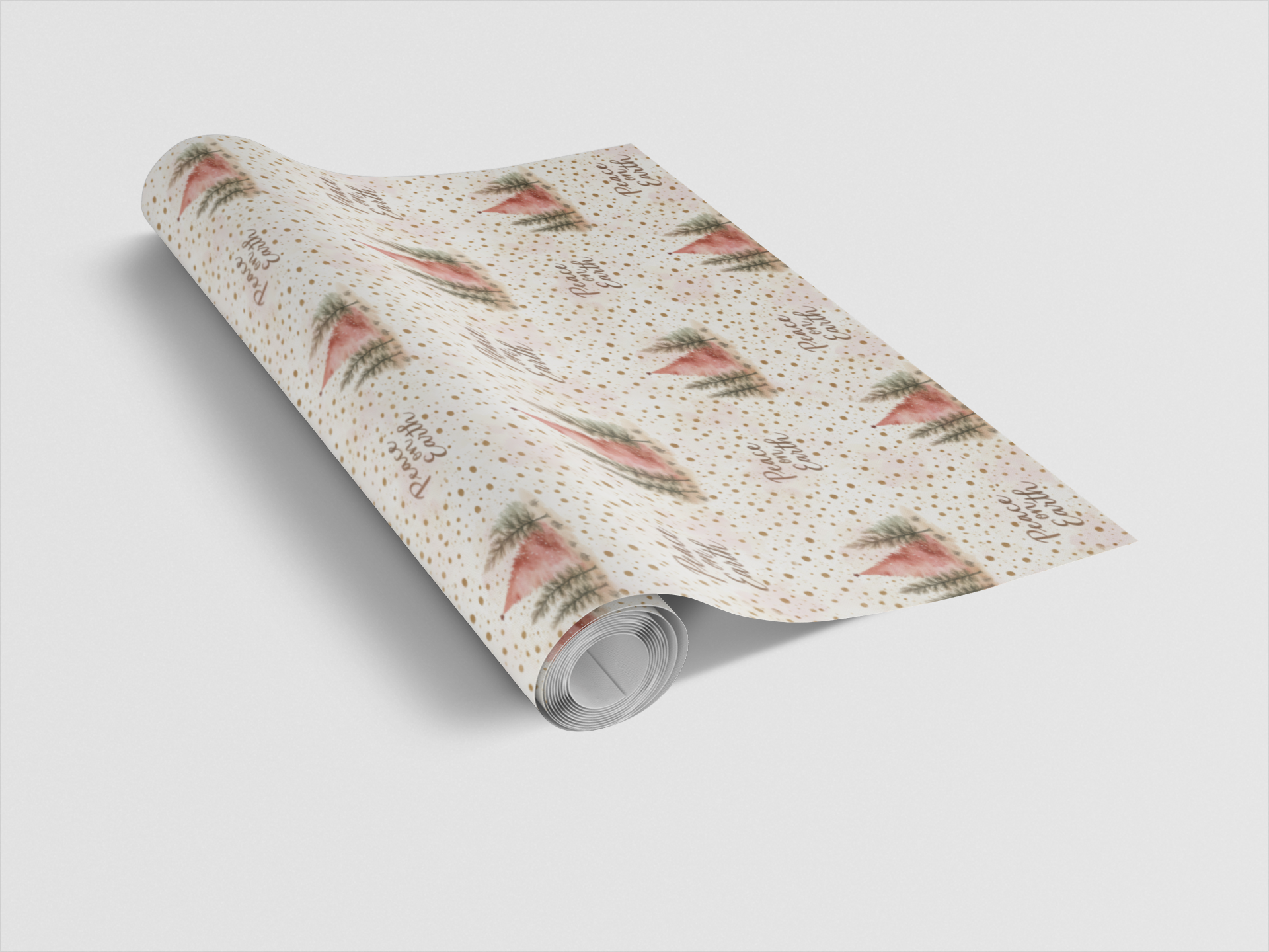 Bathed in soft blush tones and kissed with golden light, Whispering Trees radiates calm and warmth in every fold. Delicate evergreens stand beside rosy trees, their branches whispering serenity beneath a gentle snowfall of gold. The design captures the quiet magic of winter’s stillness — a celebration of harmony, hope, and the beauty of simplicity. Every gift wrapped in Whispering Trees feels like a heartfelt wish for comfort and kindness — a reminder that peace, like nature, begins softly and shines bright.
