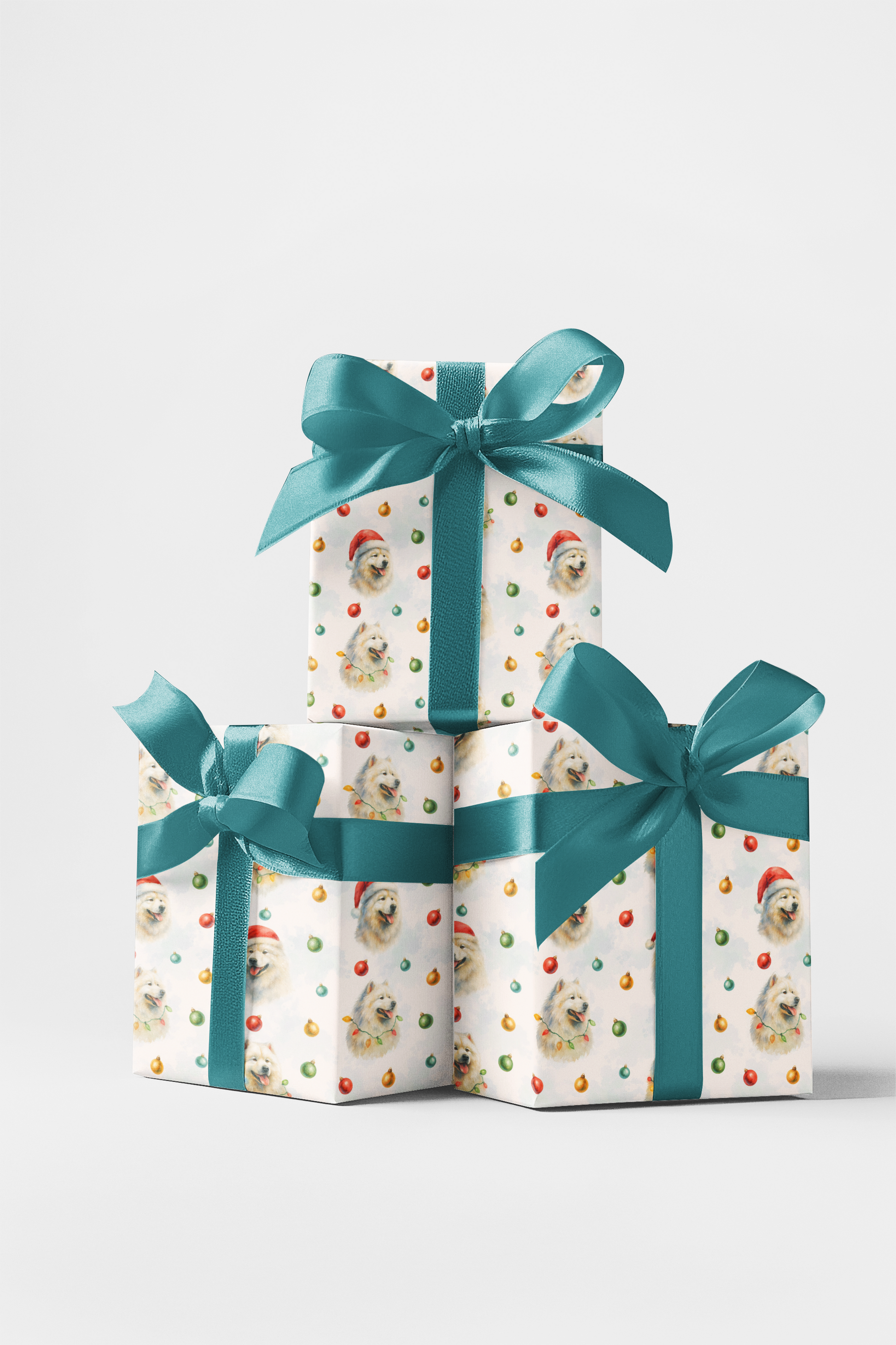 Cloaked in the glow of winter light, this Samoyed radiates warmth against the chill of the season. Its cloud-like fur glistens with a touch of snow-kissed sparkle, while a halo of colorful lights dances across its joyful grin. Each gaze carries the spirit of laughter by the hearth and the wonder of freshly fallen snow. This design celebrates the heart of holiday cheer—pure, bright, and endlessly loyal—where every glance melts the cold, and every fold wraps you in the magic of a truly Frosty Fluffmas.