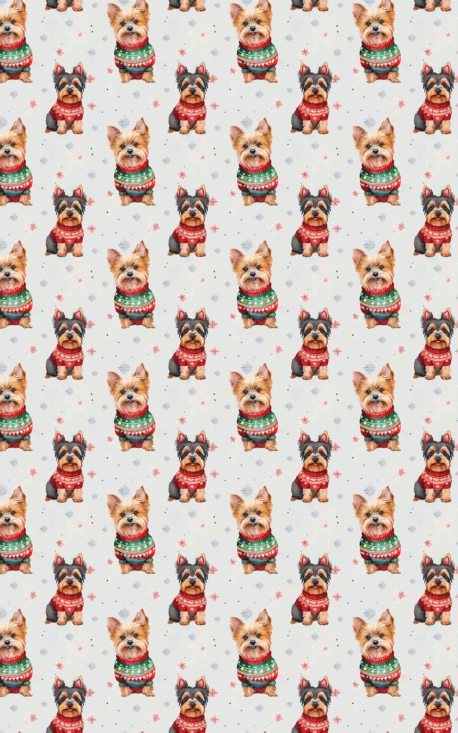 Yorkie Holiday Sweaters brings seasonal sweetness to every gift, featuring adorable Yorkshire Terriers dressed in cozy, colorful holiday sweaters. Painted in soft watercolor and arranged in a seamless repeat, this playful yet charming design is perfect for dog lovers, festive celebrations, and wrapping presents with a touch of warmth and cheer.