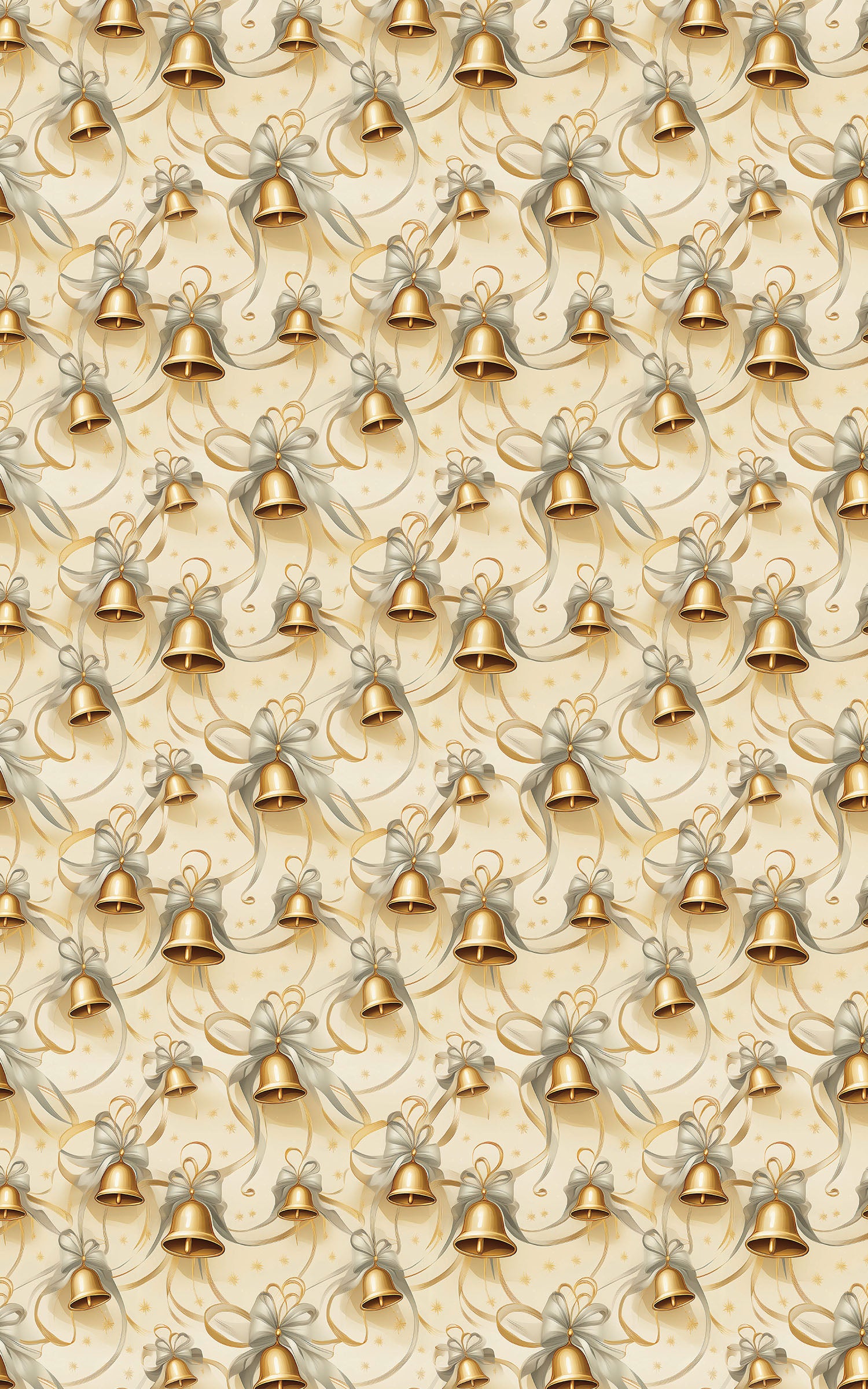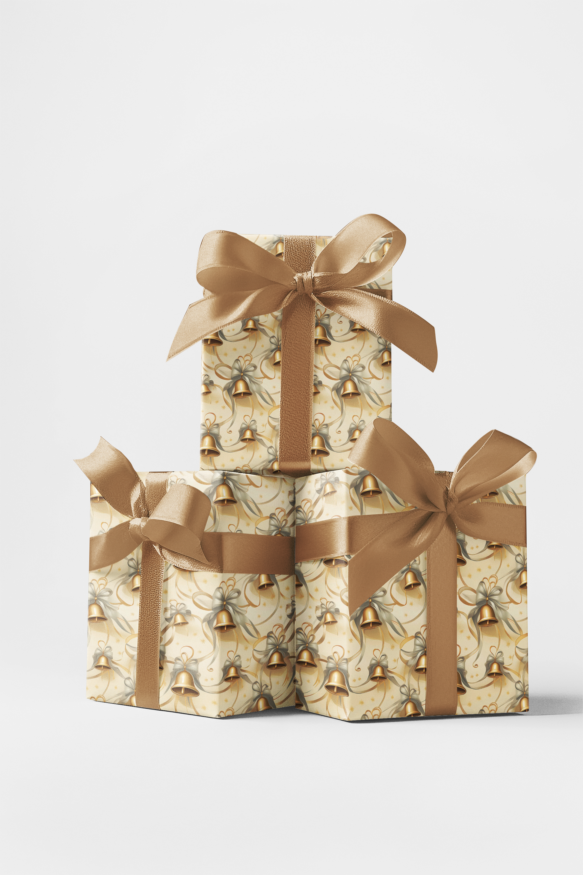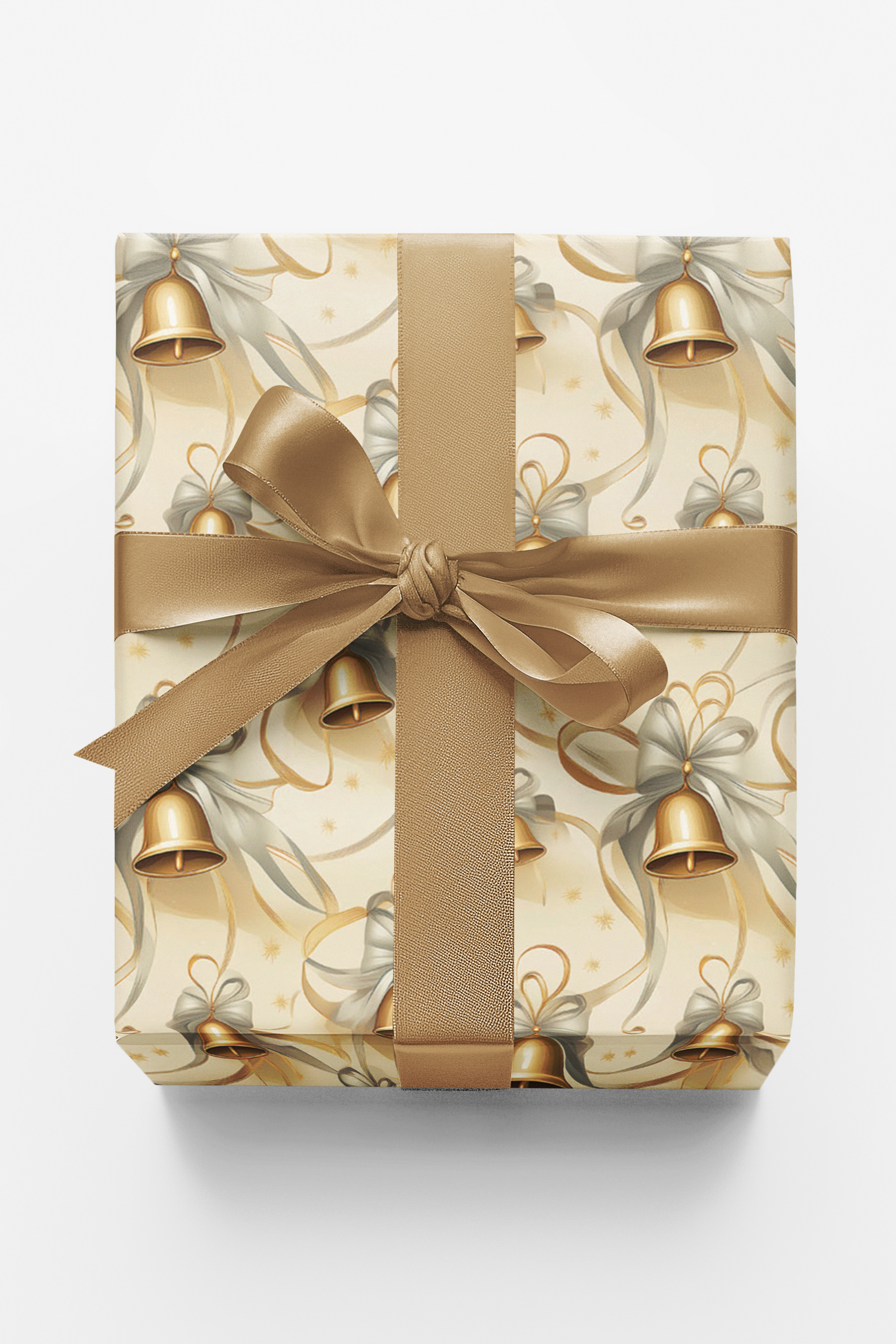 Ring in the festive season with the timeless elegance of our "Yuletide Chimes" luxury wrapping paper. This sophisticated design features a rhythmic repeat of polished golden bells, each topped with a voluminous, shimmering silver-satin bow that feels soft and luminous. Delicate gold swirls and subtle starbursts dance across a warm ivory background, creating a stunning three-dimensional aesthetic that evokes the crisp, joyful atmosphere of a classic holiday morning. Whether you are wrapping presents for a grand Christmas celebration, a winter wedding, or a sophisticated holiday gala, this boutique-luxury wrap provides an opulent and refined finish.